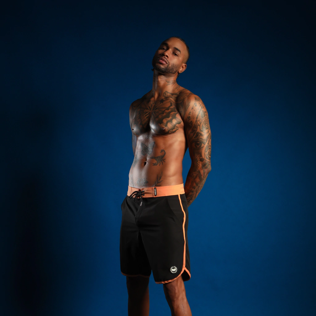 Boardshort Clássico Black Peach, design exclusivo e modelagem ideal para todos os treinos e estilos. Super confortável esse modelo de bermuda é o mais comprido da categoria, ficando relativamente na altura do joelho. Sua composição traz mobilidade, é mais usável, seca rápido e permite diversos movimentos para te acompanhar onde importar.