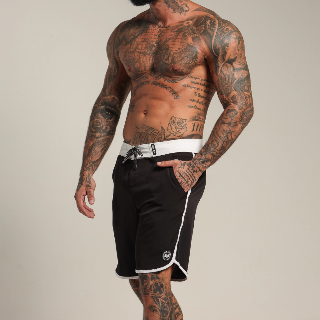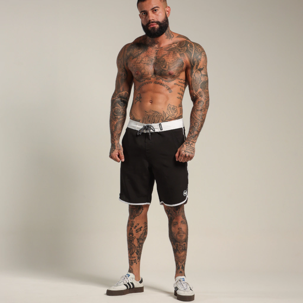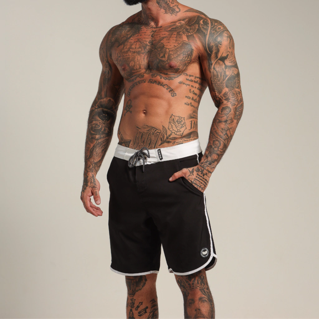 Boardshort P&B, design exclusivo e modelagem ideal para todos os treinos e estilos. Super confortável esse modelo de bermuda é o mais comprido da categoria, ficando relativamente na altura do joelho. Sua composição traz mobilidade, é mais usável, seca rápido e permite diversos movimentos para te acompanhar onde importar.