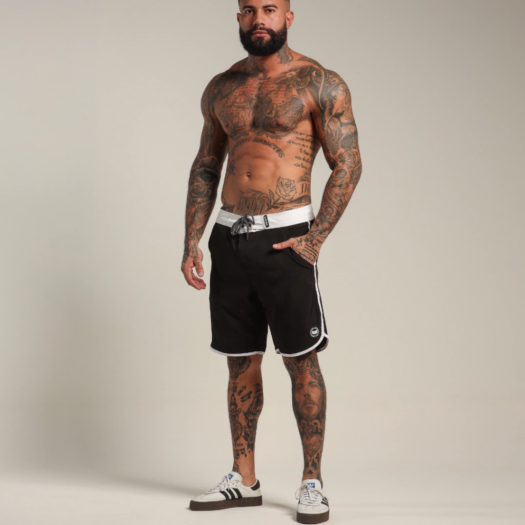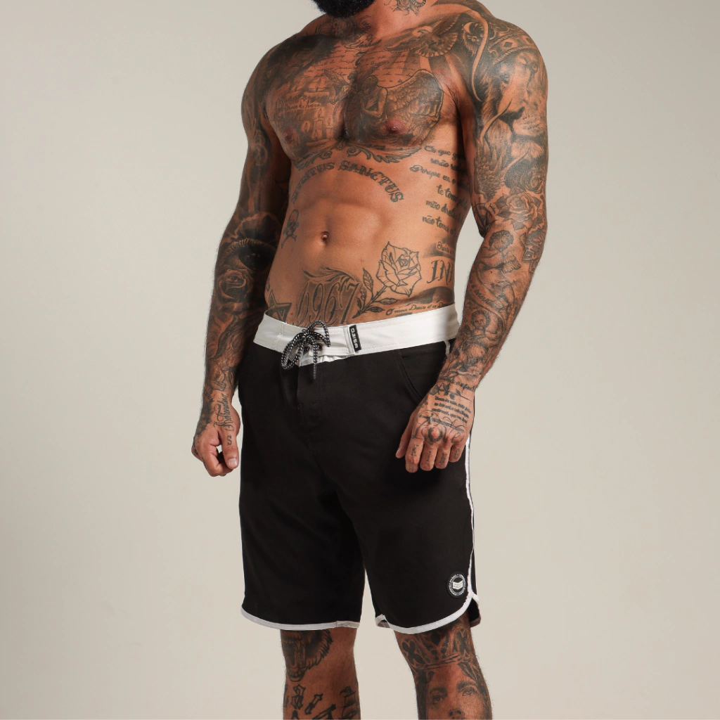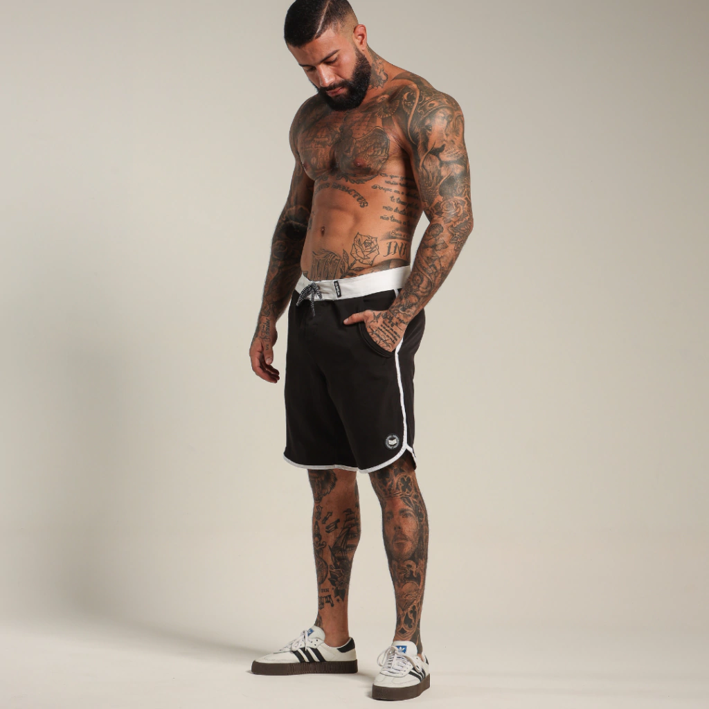Boardshort P&B, design exclusivo e modelagem ideal para todos os treinos e estilos. Super confortável esse modelo de bermuda é o mais comprido da categoria, ficando relativamente na altura do joelho. Sua composição traz mobilidade, é mais usável, seca rápido e permite diversos movimentos para te acompanhar onde importar.