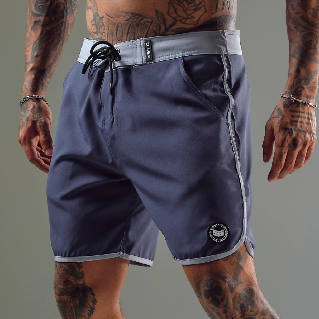 Boardshort Retrô Gray Blue, design exclusivo e modelagem ideal para todos os treinos e estilos. Super confortável essa bermuda retrô é um pouco mais curta do que as nossas bermudas clássicas, ficando acima na altura do joelho. Sua composição traz mobilidade, é mais usável, seca rápido e permite diversos movimentos para te acompanhar onde importa.