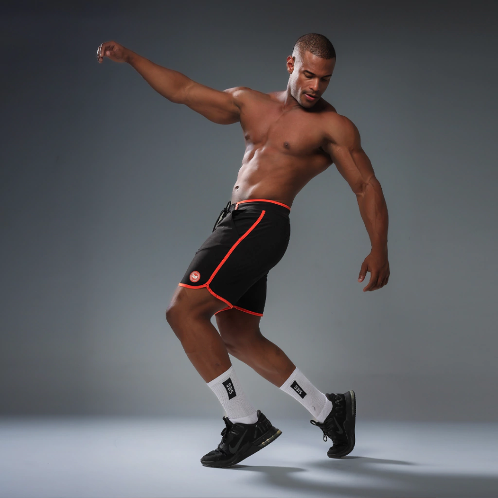 Detalhes Sofisticados: A bermuda apresenta um cós preto com detalhe em laranja, além de um viés laranja na lateral que agrega um toque de estilo. Os dois bolsos dianteiros possuem forro de tela, evitando o acúmulo de água, enquanto o bolso traseiro embutido com lapela preta oferece praticidade.