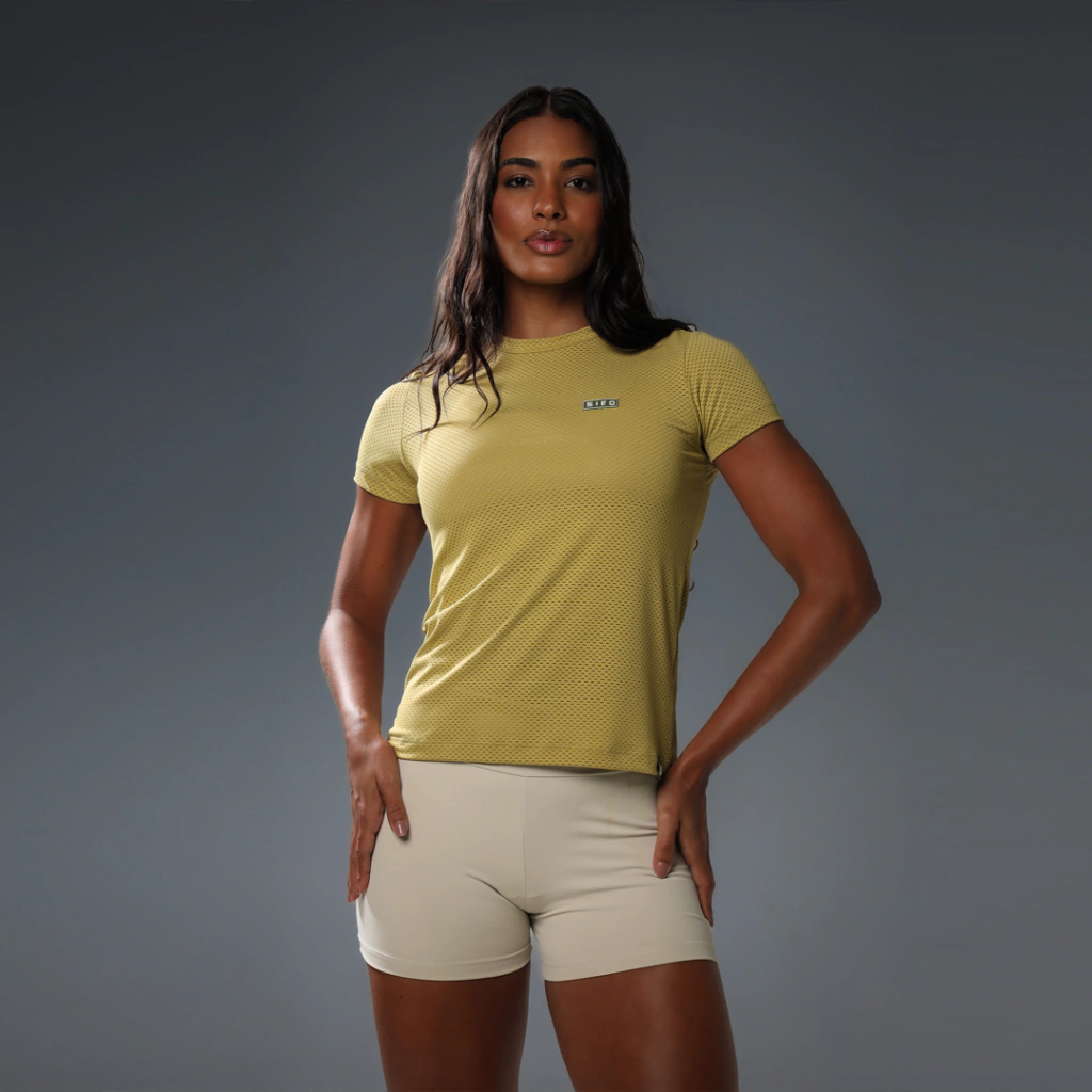 Produzida com uma mistura de poliamida e elastano, a camiseta apresenta uma textura leve e macia, além de contar com as tecnologias Dry e Air. Isso garante não apenas uma secagem rápida, mas também uma termorregulação eficiente da temperatura corporal, promovendo um maior conforto térmico durante suas atividades físicas.
