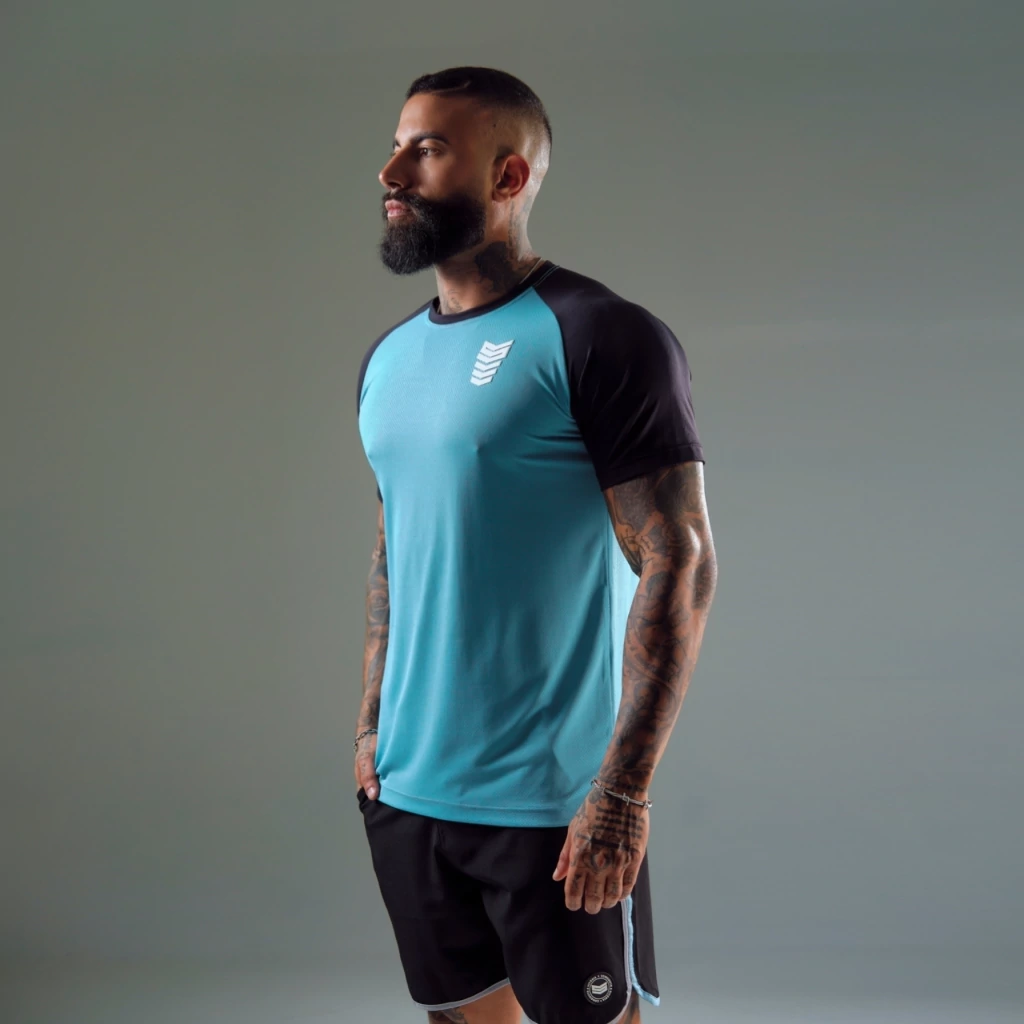 Camiseta Raglan Azzure Black proporciona maior conforto e leveza, toque gelado e não deixa mal cheiro. O tecido 100% poliamida estabiliza a temperatura do corpo, promovendo maior absorção do suor do corpo, evaporando-o e mantendo a peça seca. Possui modelagem acinturada com caimento perfeito, você vai adorar, pois é perfeita para corrida, musculação, crossfit ou uso casual.
