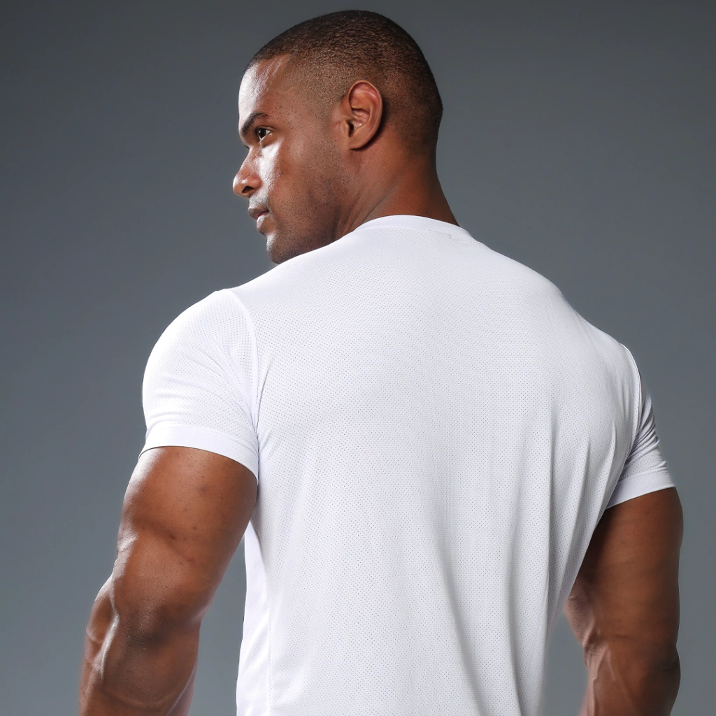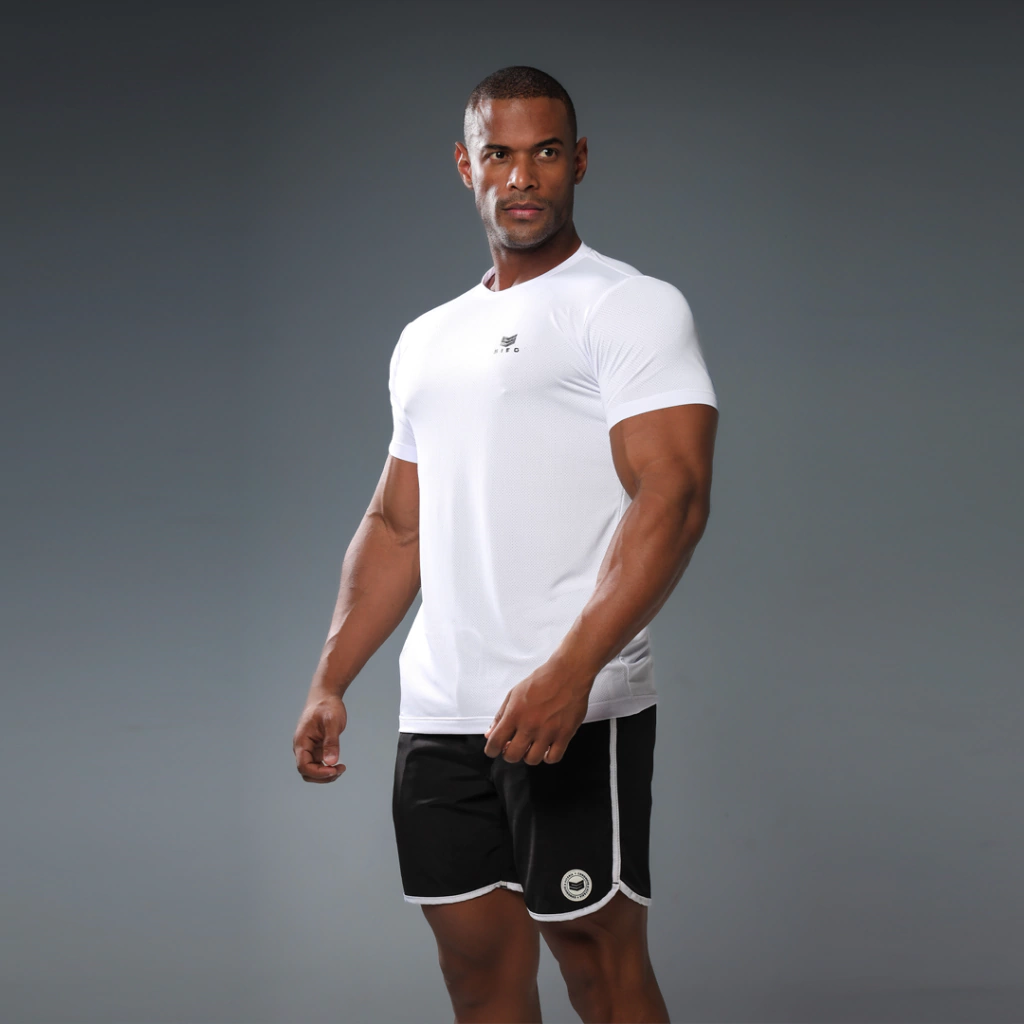 Camiseta Básica Branca proporciona maior conforto e leveza, toque gelado e não deixa mal cheiro. O tecido 100% poliamida estabiliza a temperatura do corpo, promovendo maior absorção do suor do corpo, evaporando-o e mantendo a peça seca. Possui modelagem acinturada com caimento perfeito, você vai adorar, pois é perfeita para corrida, musculação, crossfit ou uso casual.