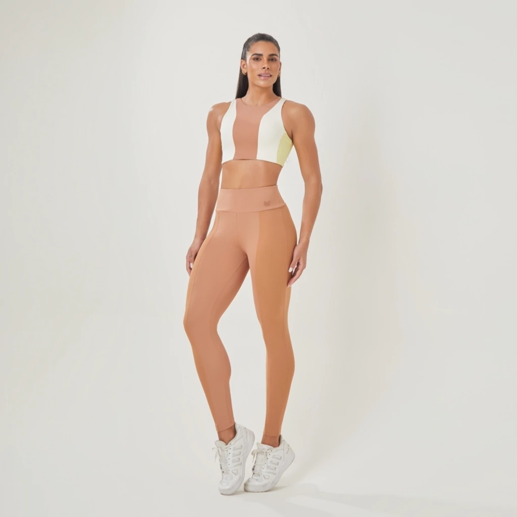 Legging que combina design moderno e funcionalidade. Possui recortes laterais em tecido texturizado que alongam a silhueta e adicionam um toque sofisticado ao visual. A pala em tecido liso garante ajuste confortável e acabamento elegante, trazendo ainda o termocolante com o logotipo da SIEG em alto relevo na lateral esquerda, que reforça autenticidade e exclusividade. Para maior praticidade, conta com bolso traseiro embutido na pala, ideal para armazenar pequenos objetos de forma discreta.