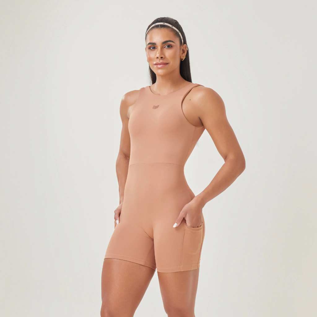 Este modelo apresenta um design moderno e funcional, desenvolvido para unir estilo e performance. O decote frontal é mais fechado, garantindo discrição e conforto, enquanto o recorte na região da cintura proporciona melhor ajuste ao corpo. O busto duplo oferece maior sustentação durante os movimentos, ideal para treinos de alta intensidade.