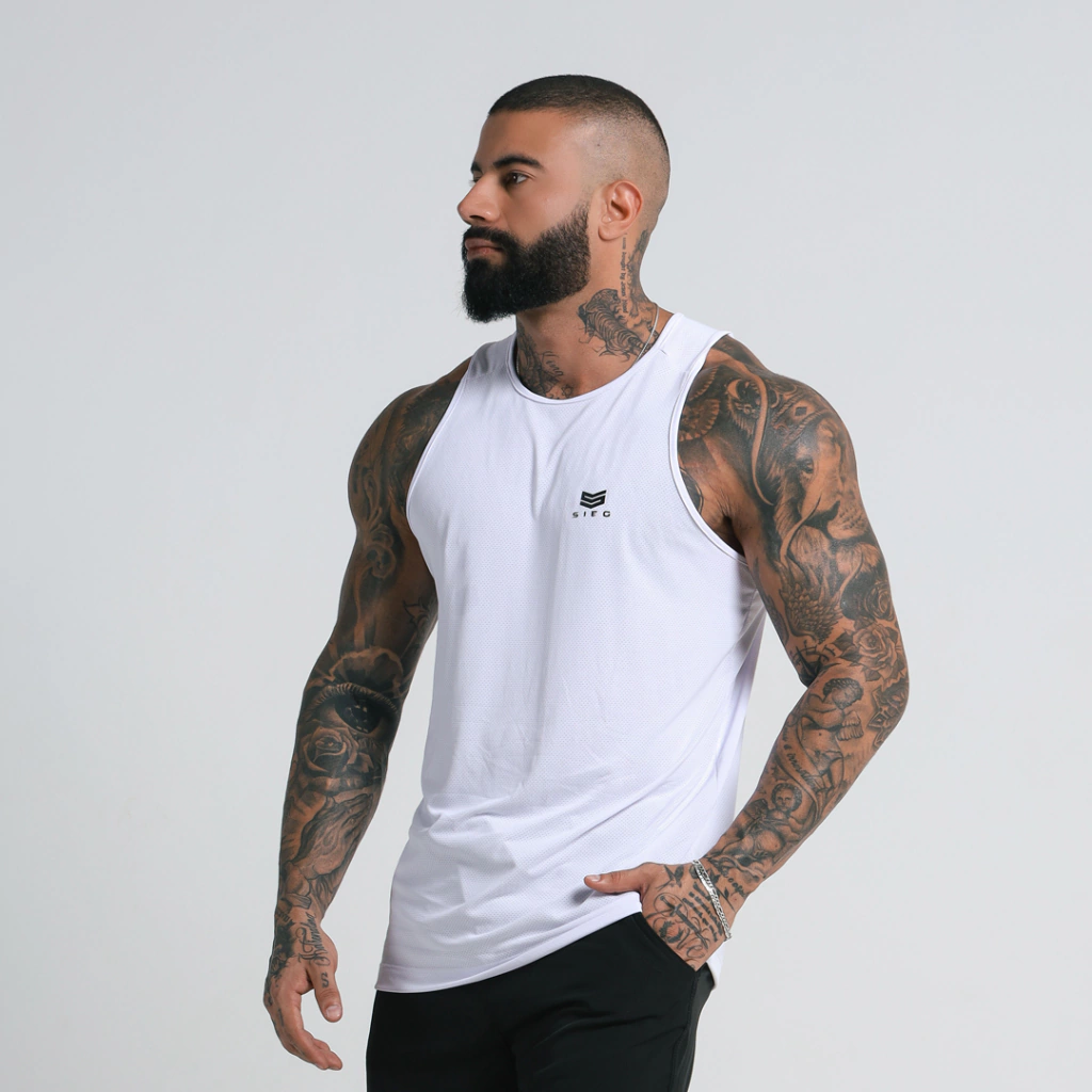 Regata Sieg Branca proporciona maior conforto e leveza, toque gelado e não deixa mal cheiro. O tecido 100% poliamida estabiliza a temperatura do corpo, promovendo maior absorção do suor do corpo, evaporando-o e mantendo a peça seca. Possui modelagem acinturada com caimento perfeito, você vai adorar, pois é perfeita para corrida, musculação, crossfit ou uso casual.